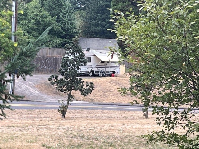 There is an RV parked on ODOT property located on the west side of 148th St. and I-84. Please report this by calling 311. We can remind ODOT that we are a senior living community and we consider this to be a safety issue as we have frequent occurrences of theft and misuse of our property by non-residents.