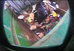 This past week we received a warning from Waste Management about contaminating our recycling. They didn’t charge us this time, but in the future they will charge us for misusing the recycling bins. Here’s a photo of what they found: